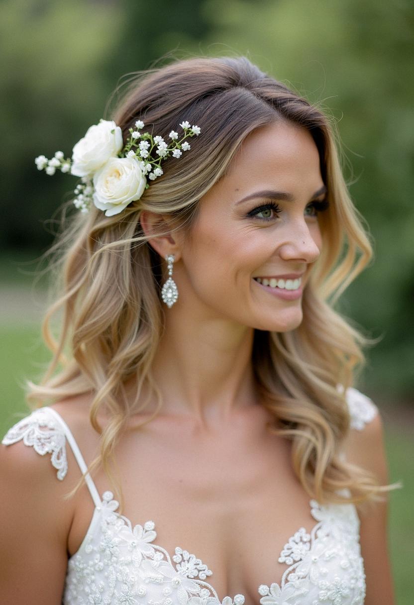 Loose Waves with Floral Accents