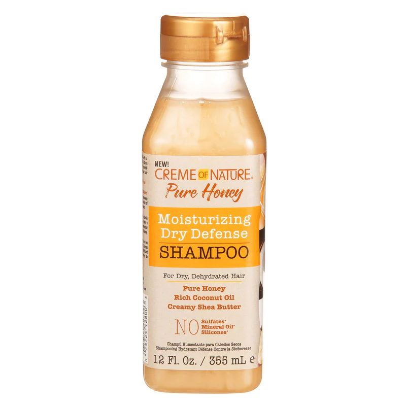 The **Creme of Nature Pure Honey Moisturizing Dry Defense Shampoo** provides intensive moisture that lasts long after rinsing. It is perfect for hair that has been exposed to environmental stress, heat damage, or needs a serious hydration reset. Users report exceptional slip, which is vital for reducing knots during the wash.