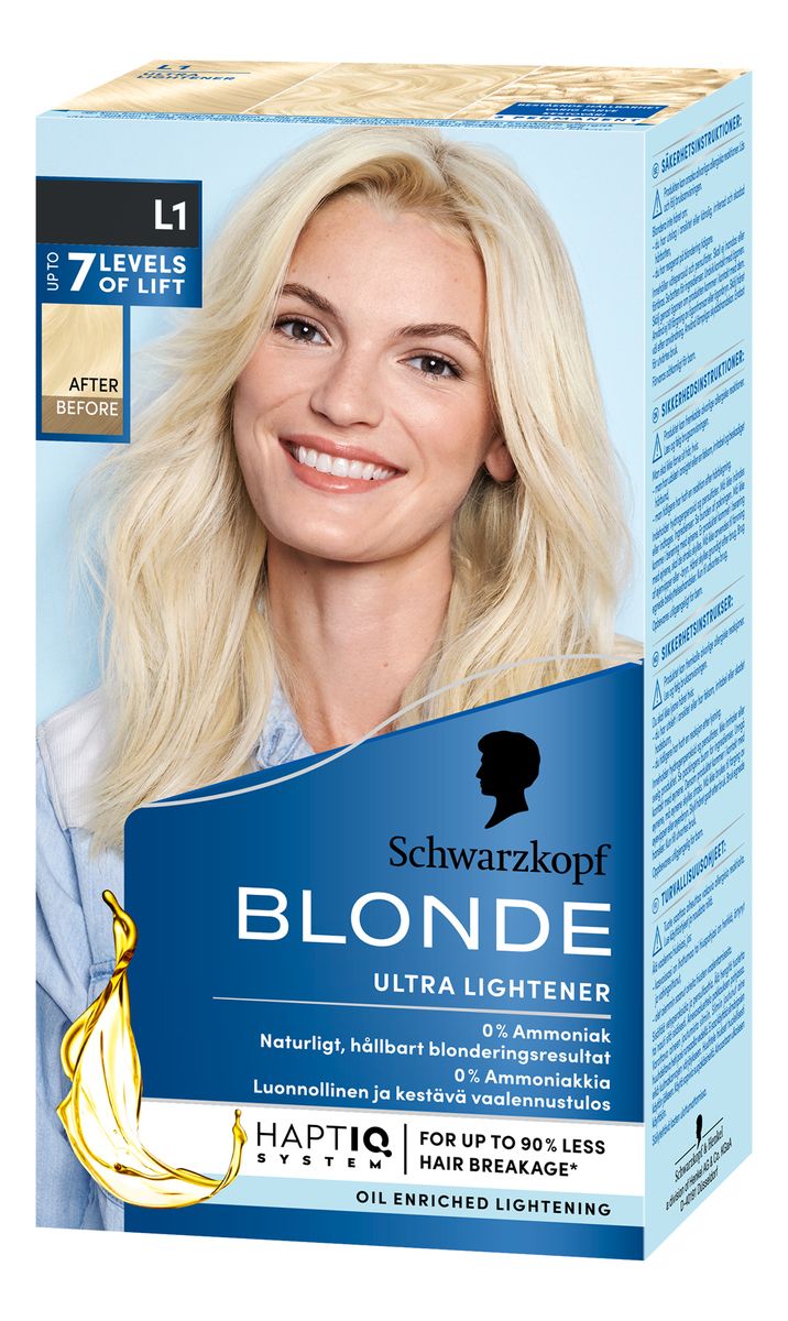 A common mistake is confusing lightening (lift) with coloring (tone). The "lightener" products (often labelled as L1, L7, etc., in the Schwarzkopf Blonde range) contain high levels of peroxide designed solely to strip pigment. Once lifted, the "color" products deposit pigments to achieve the final shade (like 'Ash' or 'Honey'). If your hair is naturally very dark, you need a powerful lightener first, followed by a separate toner, rather than relying on an all-in-one box.