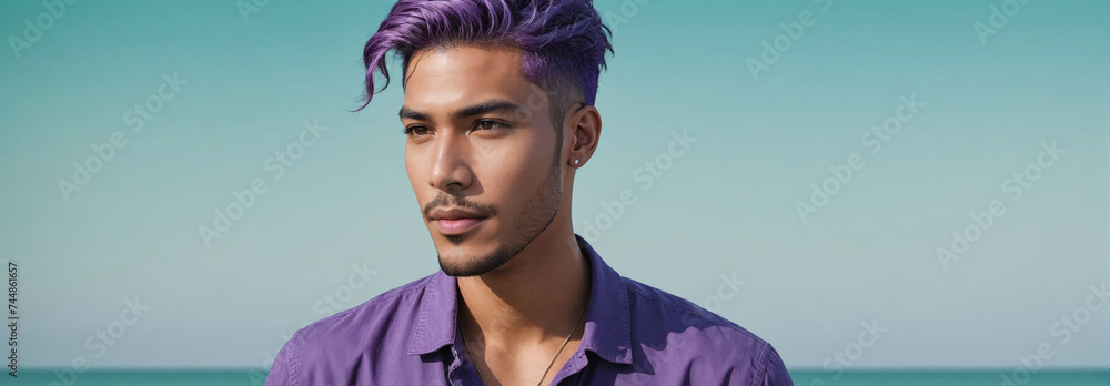 Find inspiration with this unique purple hair men illustration, crafted to provide a fresh look for your background.