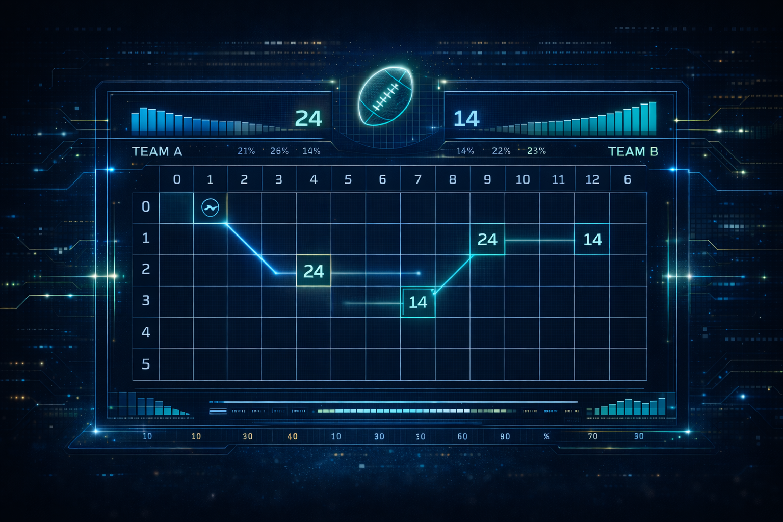 The halftime score is often the first significant indicator of which numbers are "hot." Teams generally score in multiples of 3 (Field Goal) and 7 (Touchdown + Extra Point), making certain number combinations highly repeatable.