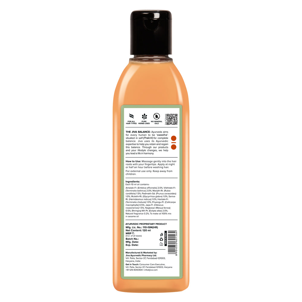 One of the earliest signs of hair health decline is premature graying. Bhringraj is rich in natural darkening agents and antioxidants that help maintain and restore the natural color of your hair. In Ayurveda, this oil is often used to balance the Pitta dosha, which is associated with excessive heat and is believed to contribute to early graying.